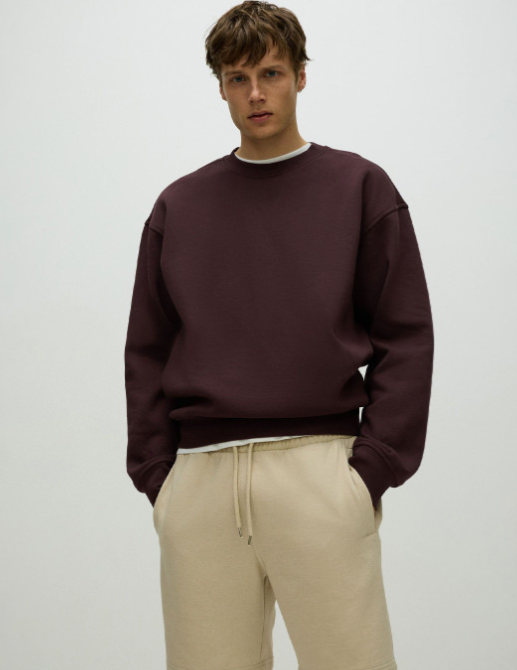 Top in midweight sweatshirt fabric made from a cotton blend with a soft brushed inside. Round, rib-trimmed neckline, dropped shoulders, long sleeves and wide ribbing at the cuffs and hem. Loose fit for a generous but not oversized silhouette.