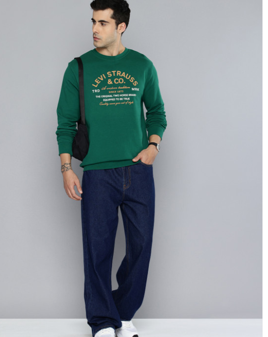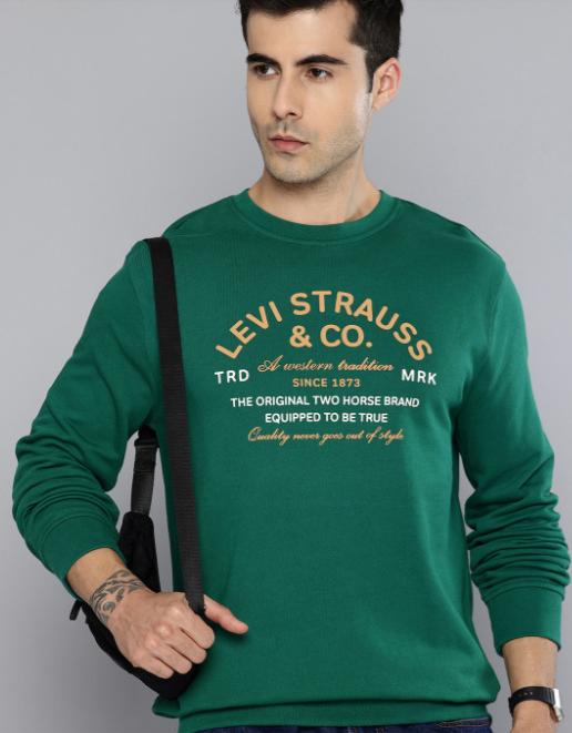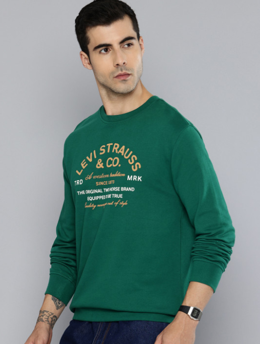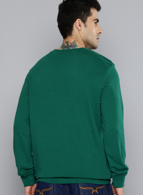 Green typography printed sweatshirt has a round neck, long sleeves, ribbed hem
