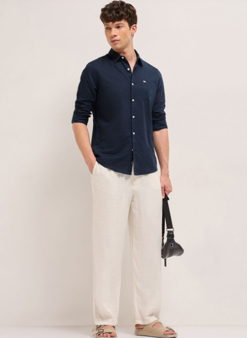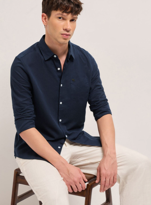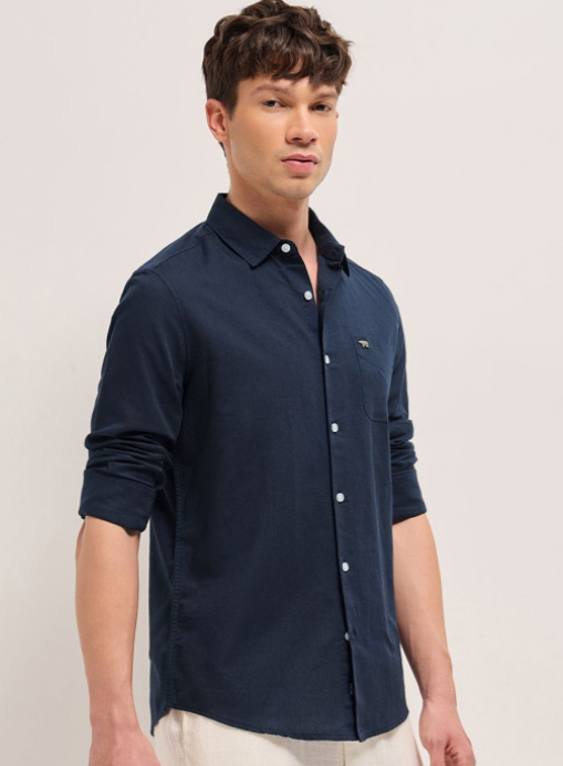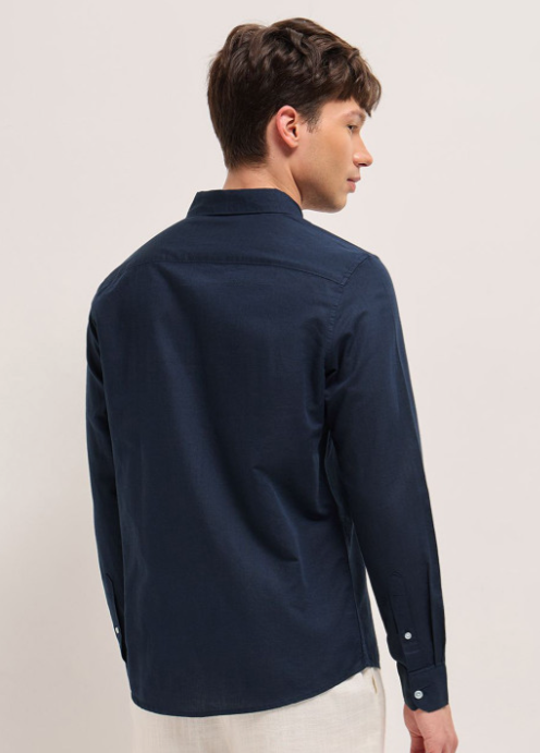 Navy blue opaque casual shirt for men